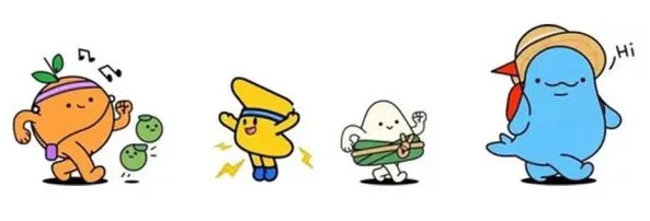 吉祥物:橙甸甸、电能能、粽满满、豚憨憨