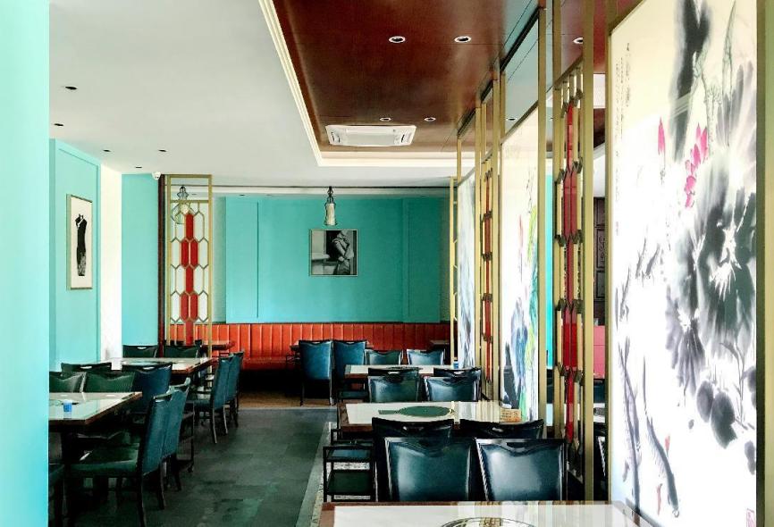 餐厅的外部形象,结合了明清古建筑的院门与窗扇,做法与材料选择了古铜与海南的火山石,传统与现代的碰撞。内部主题色彩定位为冰蓝色与炎热三亚和火锅的热烈氛围形成强烈对比,带来些许清爽与清新。