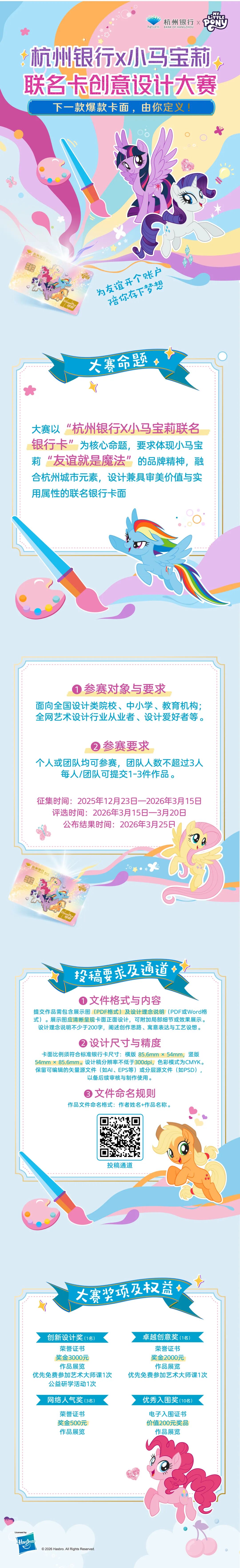融杭城韵味,绘友谊魔法!杭州银行 X 小马宝莉联名卡设计大赛邀你参赛